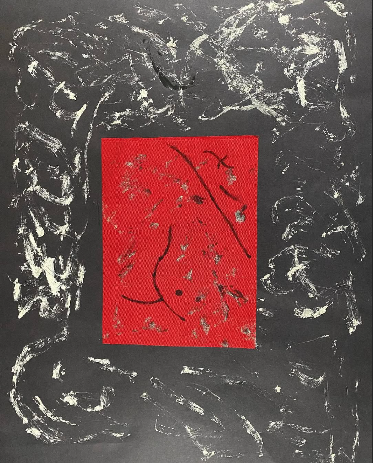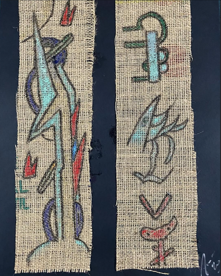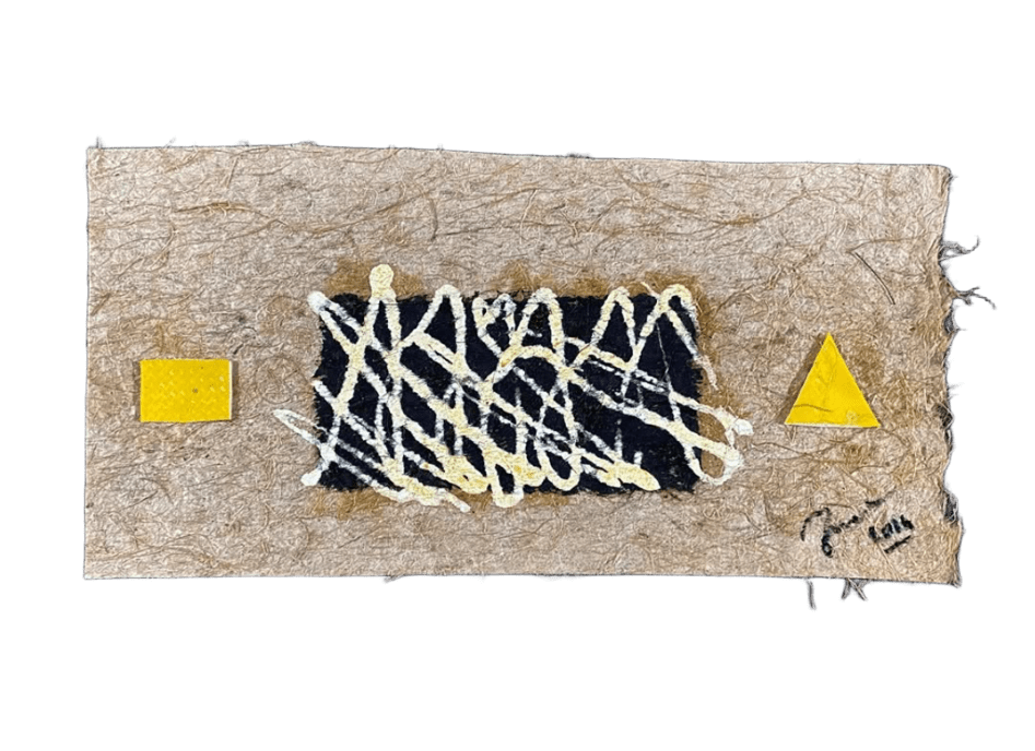 Segni e stratificazioni materiche costruiscono una narrazione visiva essenziale.